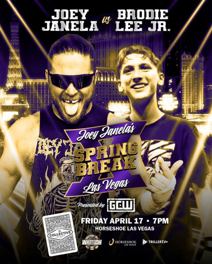 The match is now official for Joey Janela’s Spring Break X on Friday April 17th at the Horseshoe Casino in Las Vegas, Nevada. The event will take place as part of GCW’s The Collective during Wrestlemania week, and is scheduled to stream live on TrillerTV+. Spring Break X will also feature The Sandman’s final match.