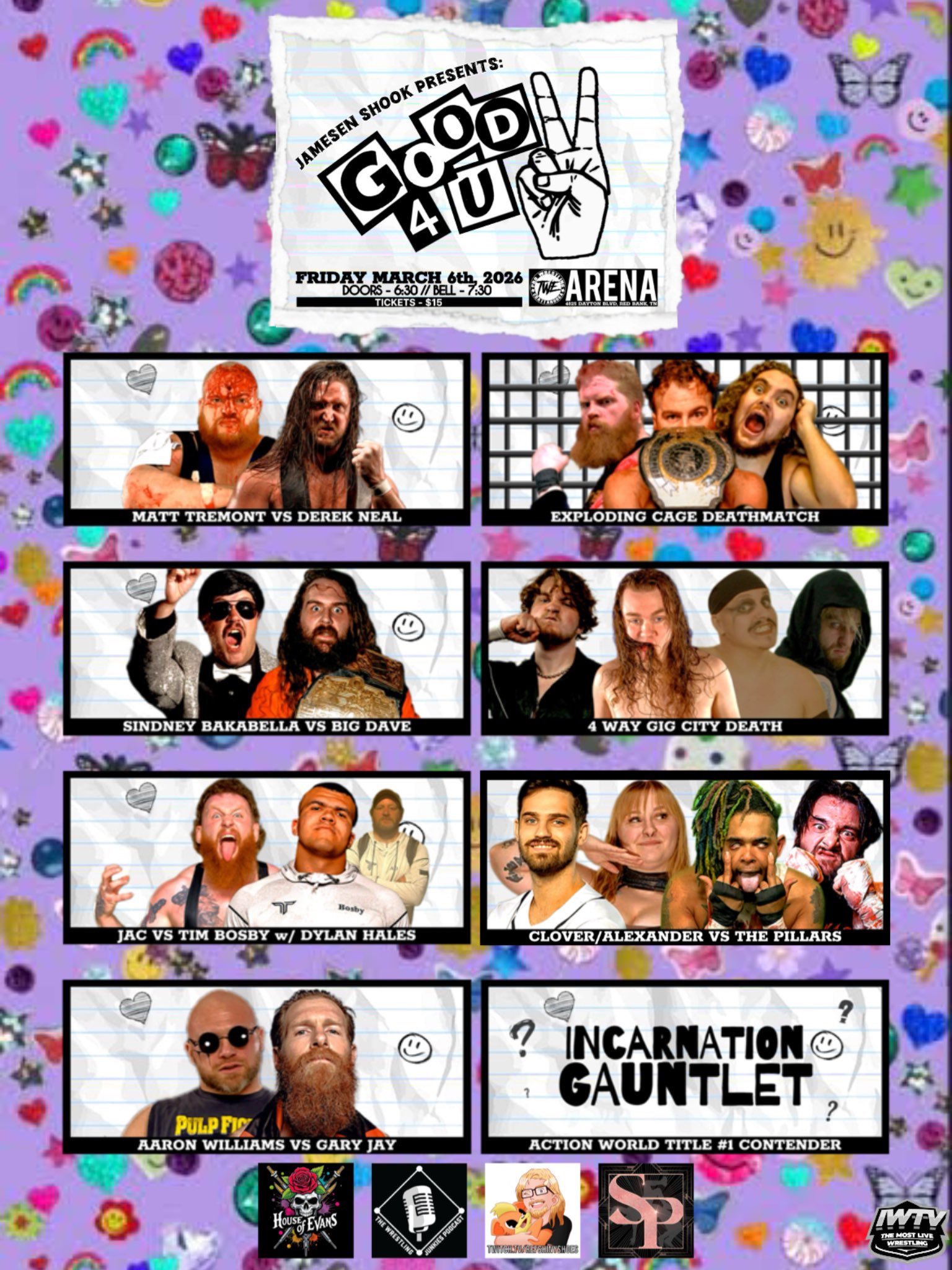 Jamesen Shook Presents 3/6/2026 Good 4 You 2 results from the TWE Arena in Red Bank, Tennessee. The event streamed live on IWTV.