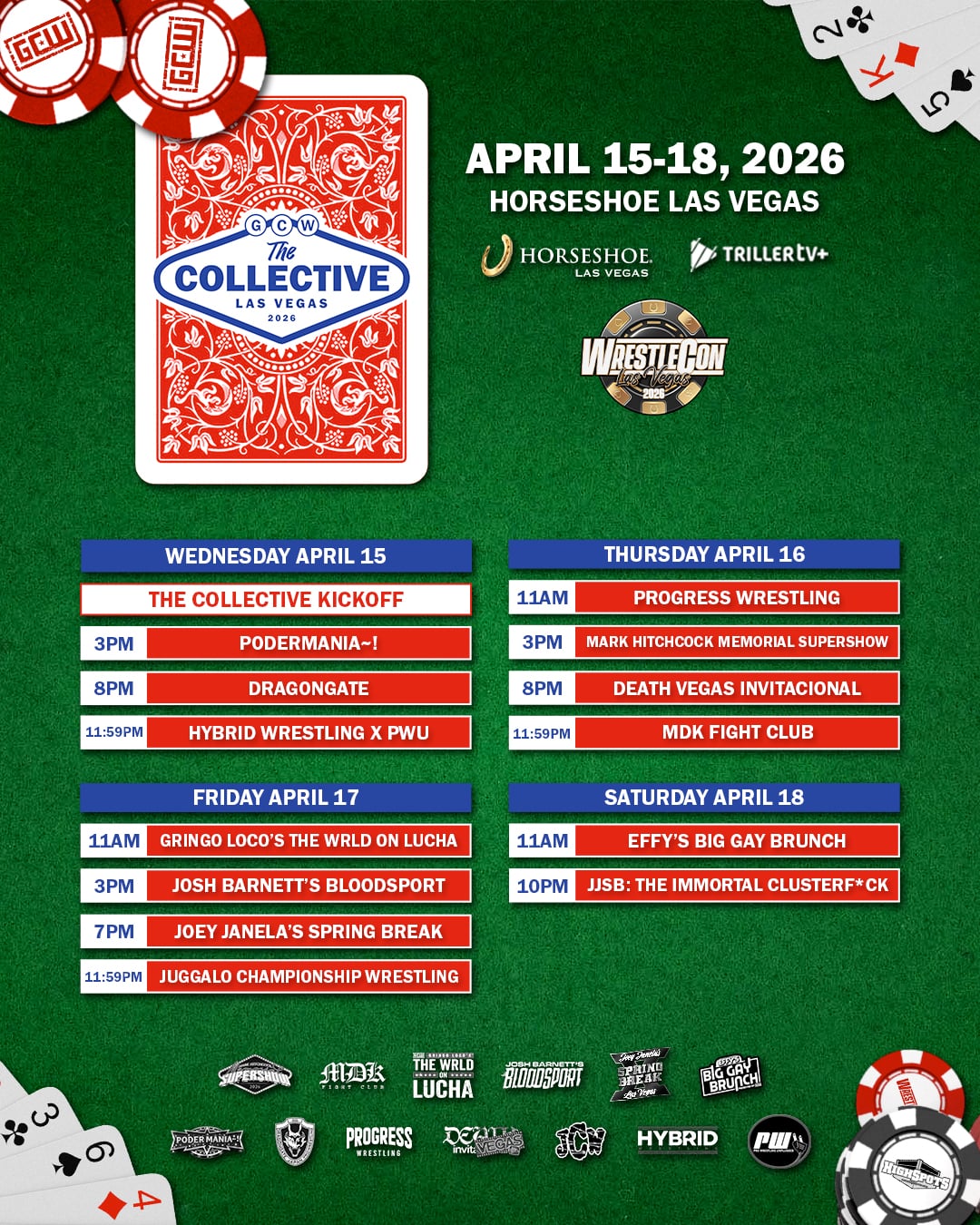 Here’s a look at the full schedule and announcements for The Collective events taking place at The Horseshoe Casino in Las Vegas, Nevada. All four days of events will stream live on TrillerTV+.