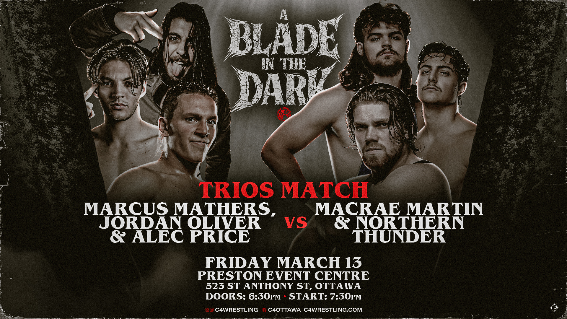 1. Macrae Martin & Northern Thunder vs. Marcus Mathers & Bustah & The Brain from C4 Wrestling’s “A Blade In The Dark”