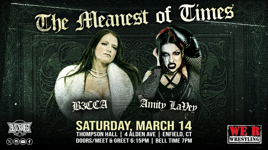 Kicking off the list, we saw Blitzkrieg! Pro return to Enfield, CT on Saturday, March 14th, for it’s event, “The Meanest Of Times.” While we saw a ton of great matches, including a beautiful main event which saw Charles Mason win the Bedlam Championship from Sammy Diaz, one match stood out head and shoulders above MOST of the rest. We saw B3CCA make her return to Blitzkrieg! Pro since being turned on by her former B3TJC tag team partner, TJ Crawford. In her return match, she had a very tall task in front of her as she went one-on-one with the “Horror Show,” known as Amity LaVey. B3CCA is an incredible performer, both in the ring and out. Since making her return to the ring, B3CCA is picking up right where she left off. She has the potential to be the top woman to come out of the northeast, and that’s saying something. Her potential is truly astronomical. From the moment her entrance hits to the match itself, fans are hooked. Very few people can do it as well as she can in this one. This match was a style clash, which made it that much better. On one hand, we saw a pop-star, an elaborate performer, a showman. On the other hand, we saw the dark side. The horror show, the creepy side of LaVey. Similar to B3CCA, LaVey captivates audiences like very few know how to. Her look, style, and skill leave fans in shock and awe. LaVey is someone that I’m very happy and proud to see getting booked more. From my neck of the woods on Long Island, NY, LaVey has been a mainstay at a couple of promotions here. However, as of late, we’ve seen her branch into Wrestling Open, Beyond Wrestling, and begin her takeover of the Northeast. She’s such a special talent. She deserves to be booked all over, and it’s great seeing her finally get that shot. LaVey is going to be a star in this world, and now is the time to jump on the bandwagon. Go back and check this one out on the Blitzkrieg! Pro VOD channel on IWTV.