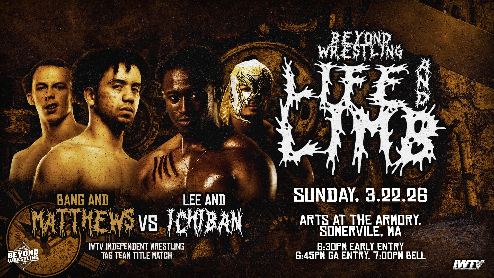 On Sunday, we saw Beyond Wrestling return to Somerville, MA, as a part of the double-header with WWR+ for the second event of the day, “Life And Limb.” The event saw some great action and big moments, including Krule vs. BRG, Jon Gresham vs. Mercedes Martinez, and so much more. However, the standout match of the night was the one right before the main event. Bang & Matthews, Davey Bang & August Matthews, returned to Beyond Wrestling as they put their IWTV Independent Wrestling Tag Team Championships on the line against two of Beyond Wrestling’s favorite stars, Ichiban & Brando Lee. Bang & Matthews won the vacant titles back on January 1st when they knocked off former champions, Miracle Generation. Over the course of the next 80+ days, Bang & Matthews have put their titles on the line against some of the top talent on the independent scene today, including teams like Star Struck’s Anthony Greene & Channing Thomas, and The Production’s Katie Arquette & Derek Dillinger. However, they had their toughest task to date as they went toe-to-toe with Ichiban and Brando Lee on Sunday. Ichiban and Brando Lee are very similar to Bang & Matthews, with the high-flying style. So, where Bang & Matthews excelled the most, they were met by Ichiban & Lee. Bang & Matthews were booed hard from the onset of this match. They weren’t necessarily the heels, but they were, however, going up against two of the biggest fan favorites in Beyond Wrestling today. So, that spells disaster for just about anyone. This was about as high-energy, high-octane, high-speed, and high impact of a tag title match as you could have asked for. This match quickly got chaotic, and bodies were flying. The fans ate it all up. When the match was over, Bang & Matthews, who were booed heavily, were being serenaded with “PLEASE COME BACK” chants. This was a fantastic tag match that makes you tired just watching it. These two teams complemented each other very well, and that made it all that much better. Go back and check this one out on the Beyond Wrestling VOD channel on IWTV.
