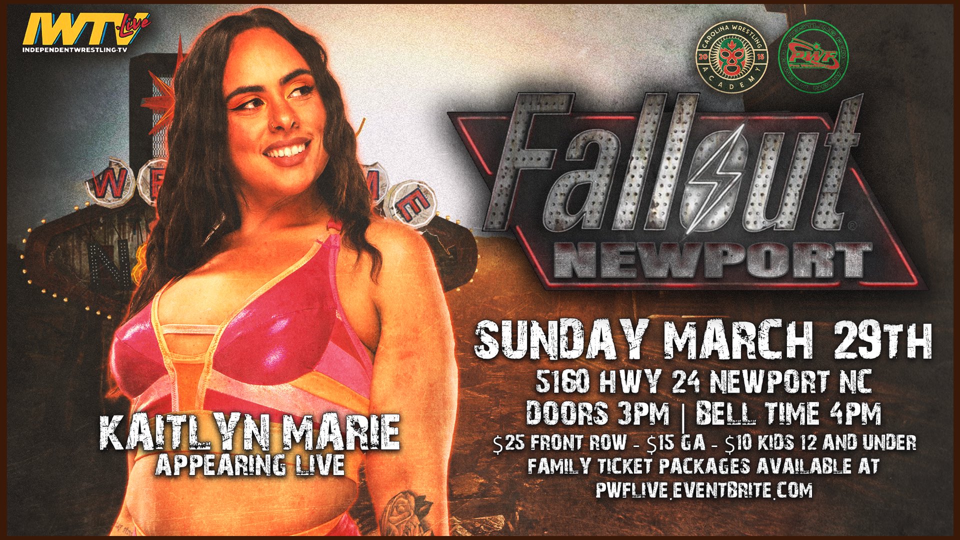 Premier Wrestling Federation 3/29/2026 PWF Fallout Newport results from the Carolina Wrestling Academy in Newport, North Carolina. The event streamed live on IWTV.