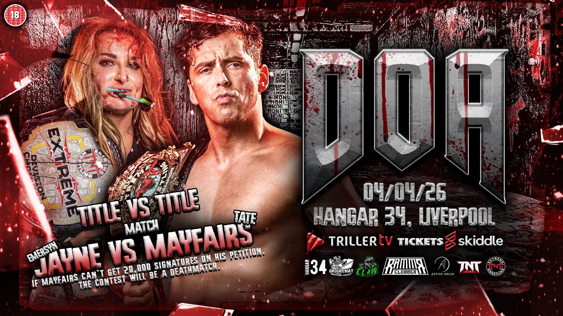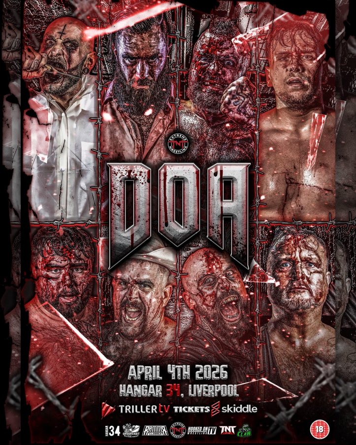 TNT Extreme Wrestling 4/4/2026 DOA 2026 results from Hangar 34 in Liverpool, England. The event streamed live on TrillerTV+.