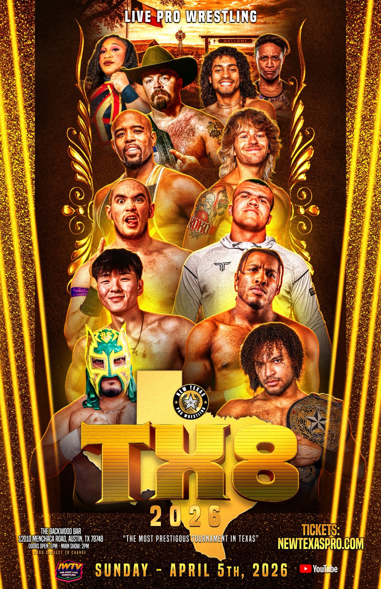 - TX8 2026 Finals for the New Texas Pro Lonestar Championship: Jesse Funaki def. Timur The Great (c) to win the 2026 T8 tournament and become the New Texas Pro Lonestar Champion