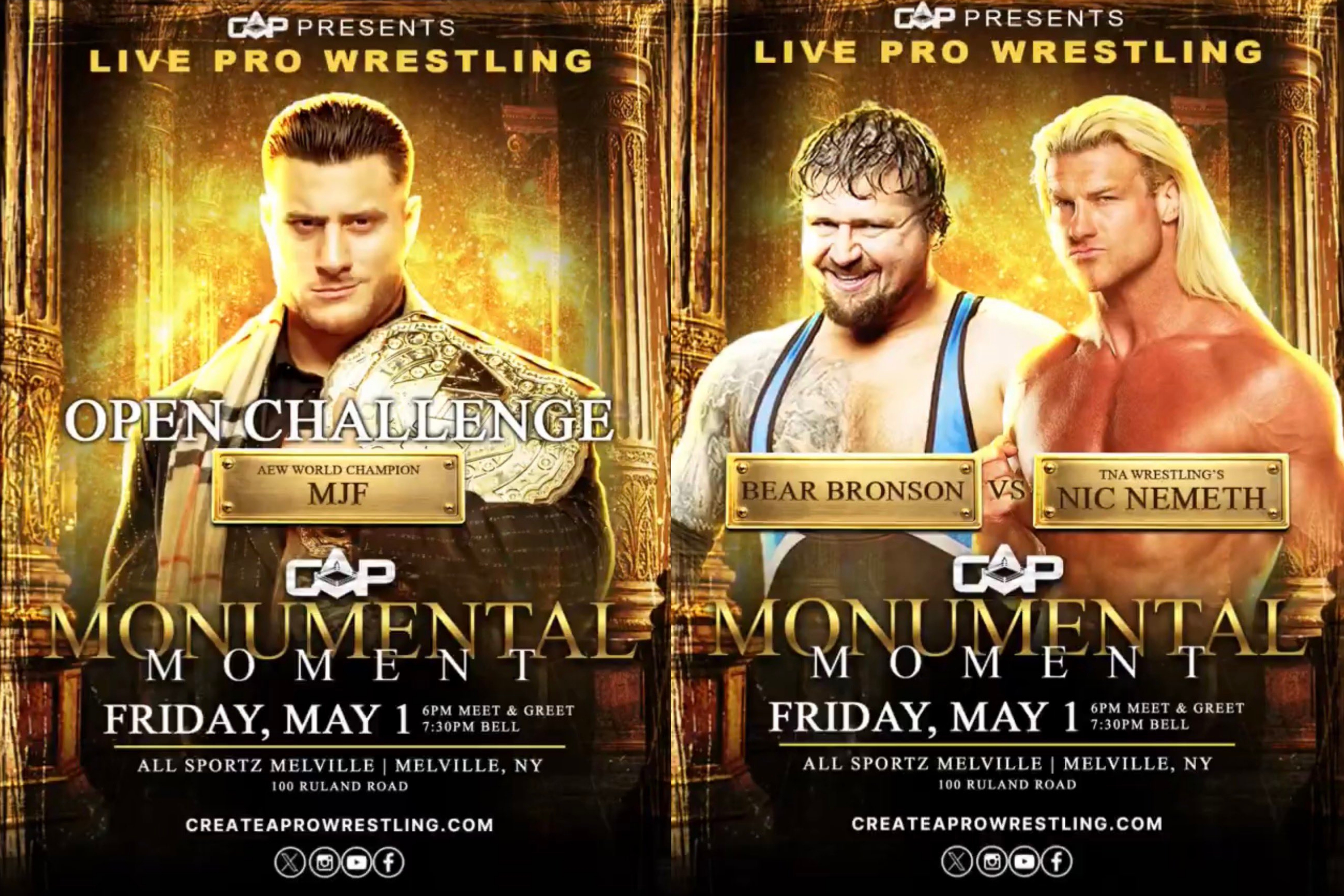 Last night, Brian Myers of Create A Pro gave an update on the card. It will now be Nic Nemeth squaring off against Bear Bronson. As for the AEW World Champion MJF, he has put out an open challenge.