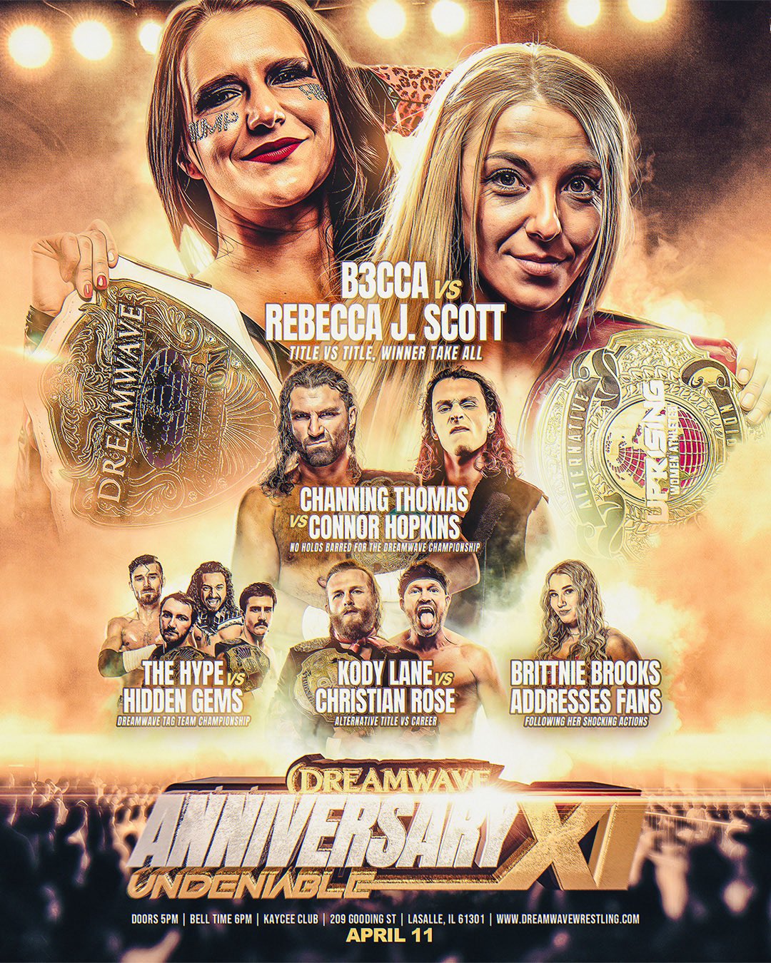 Dreamwave Wrestling 4/11/2026 “Anniversary XI: Undeniable” results from the Kaycee Club in LaSalle, IL. The event streamed live on IWTV.