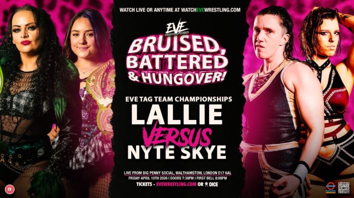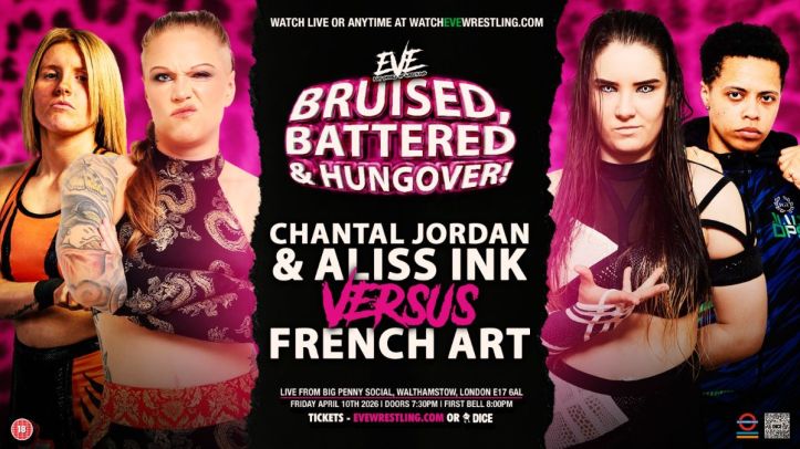 EVE’s “Bruised, Battered and Hungover” took place in London on April 10 and was broadcasted live on their YouTube channel. It included two AEW stars, two great tag team battles, a match between two of the best in Europe, and much more.