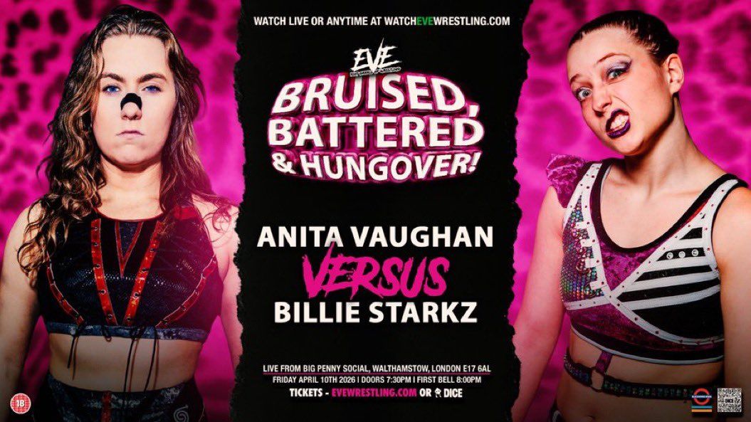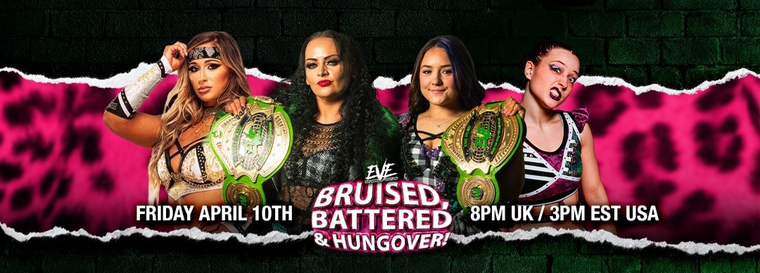EVE’s “Bruised, Battered and Hungover” took place in London on April 10 and was broadcasted live on their YouTube channel. It included two AEW stars, two great tag team battles, a match between two of the best in Europe, and much more.